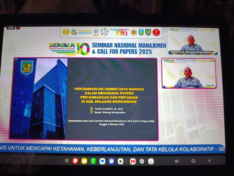 Bupati Bolaang Mongondow (Bolmong), Yusra Alhabsyi, S.E., M.Si, mendapat kehormatan sebagai Keynote Speaker pada Seminar Nasional Manajemen (SENIMA) 10 & Call for Papers 2025 yang diselenggarakan Universitas Negeri Surabaya (Unesa), Sabtu (4/10/2025).