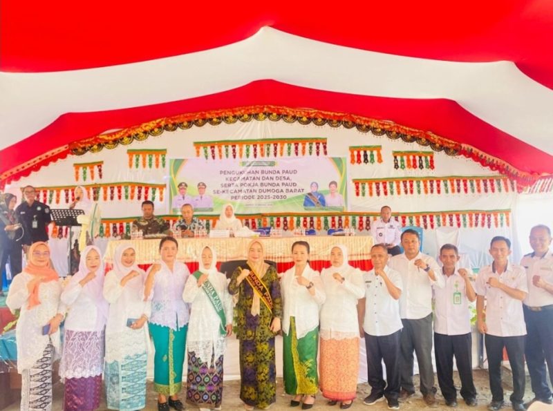Ketua Tim Penggerak Pemberdayaan dan Kesejahteraan Keluarga (TP-PKK) Kabupaten Bolaang Mongondow, Ny. Kalsum Alhabsyi-Alhabsyi, resmi melantik Ketua TP-PKK Kecamatan sekaligus Bunda PAUD dari 12 desa se-Kecamatan Dumoga Barat. Kegiatan pelantikan berlangsung di halaman Kantor Kecamatan Dumoga Barat dan dihadiri berbagai unsur pemerintahan serta tokoh masyarakat, Selasa (15/10/2025).