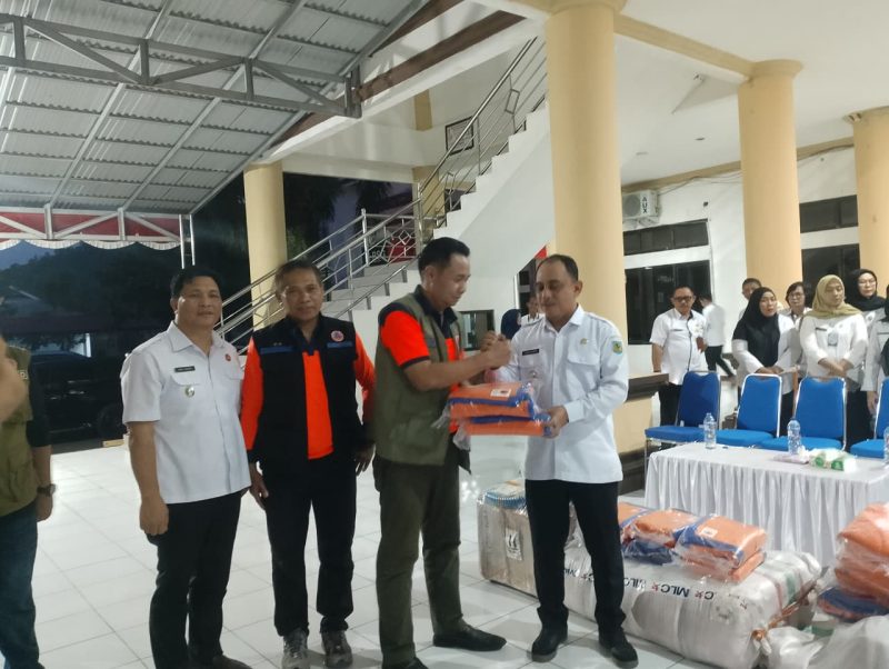Bupati Bolmong Yusra Alhabsyi didampingi Wakil Bupati Doni Lumenta menerima langsung bantuan tersebut, diserahkan Lutfi Beta yang mewakili Kepala BNPB RI Mayjen TNI Moch. bersama tim Kedeputian Penanganan Darurat BNPB, di Kantor Bupati Bolmong Rabu 5 November 2025.
