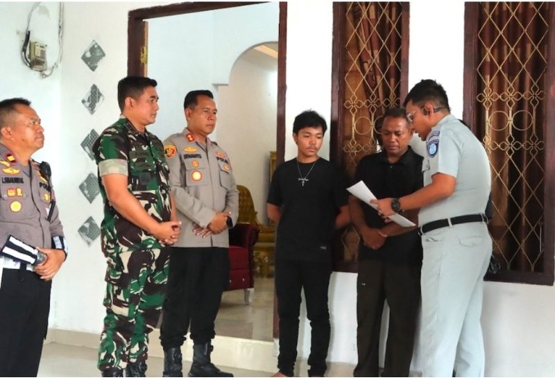 Kotamobagu – Rumah duka Korban kecelakaan lalu lintas yang merupakan Istri Prajurit TNI yang bertugas di Kodim 1303 Bolmong didesa Moyag Tampoan Kecamatan Kotamobagu Timur mendapat kunjungan dari Kapolres Kotamobagu serta Dandim 1303 Bolmong dan Kepala Jasa Raharja Kotamobagu, Senin (17/11/2025).