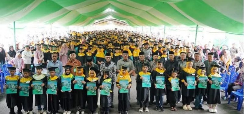 Dengan berseragam toga hijau kuning. Wisuda TPQ/TPA Angkatan XXV Tahun 2025 ini, dikuti oleh Santriwan Santriwati sebanyak 1.029 dari 108 TPQ/TPA se Bolaang Mongondow.