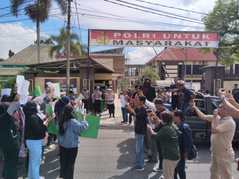 Kotamobagu – Sejumlah warga yang tergabung sebagai pendukung dr. Siti Korompot menggelar aksi damai di depan Mapolres Kotamobagu, Selasa (25/11/2025).