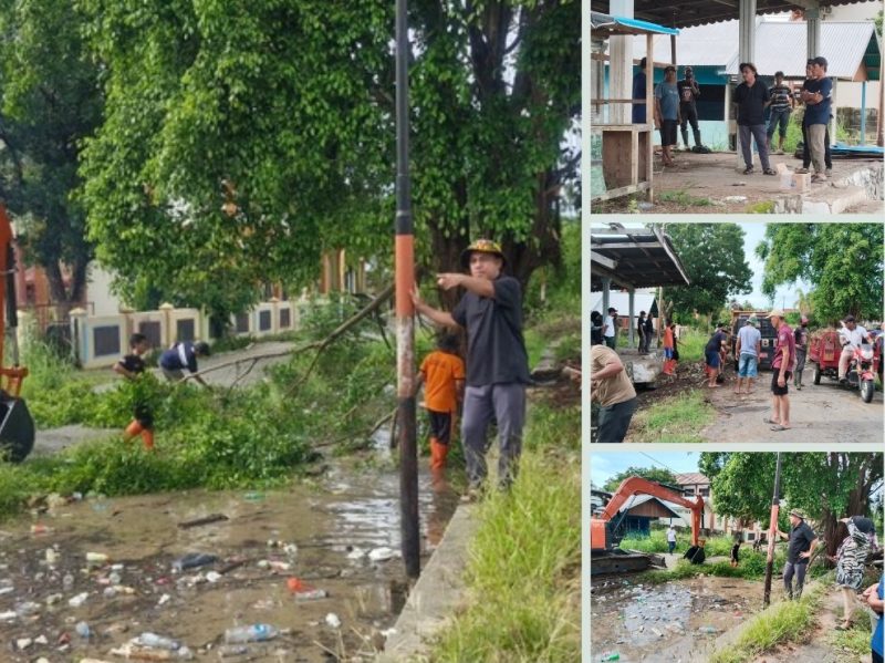 Bolmong – Bupati Bolaang Mongondow, Yusra Alhabsyi tinjau pembersihan sampah dan penebangan ranting pohon, oleh petugas kebersihan, BPBD dan Satpol PP Pemkab Bolmong, di samping lapangan Daagon Lolak, Jumat (12/12/2025).