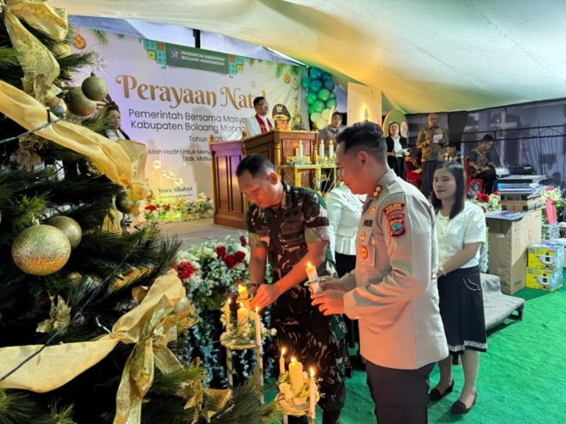 Dalam rangkaian kegiatan, turut terlihat Dandim 1303/Bolmong Letkol Inf Manashe Lomo, didampingi Kapolres Kotamobagu, ikut menyalakan lilin pohon Natal sebagai simbol terang, harapan, dan damai bagi seluruh masyarakat.